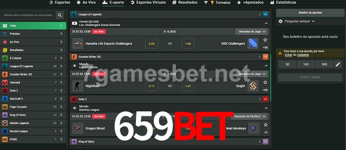 O 659Bet oferece uma grande seleção de opções de apostas em e-sports com probabilidades competitivas